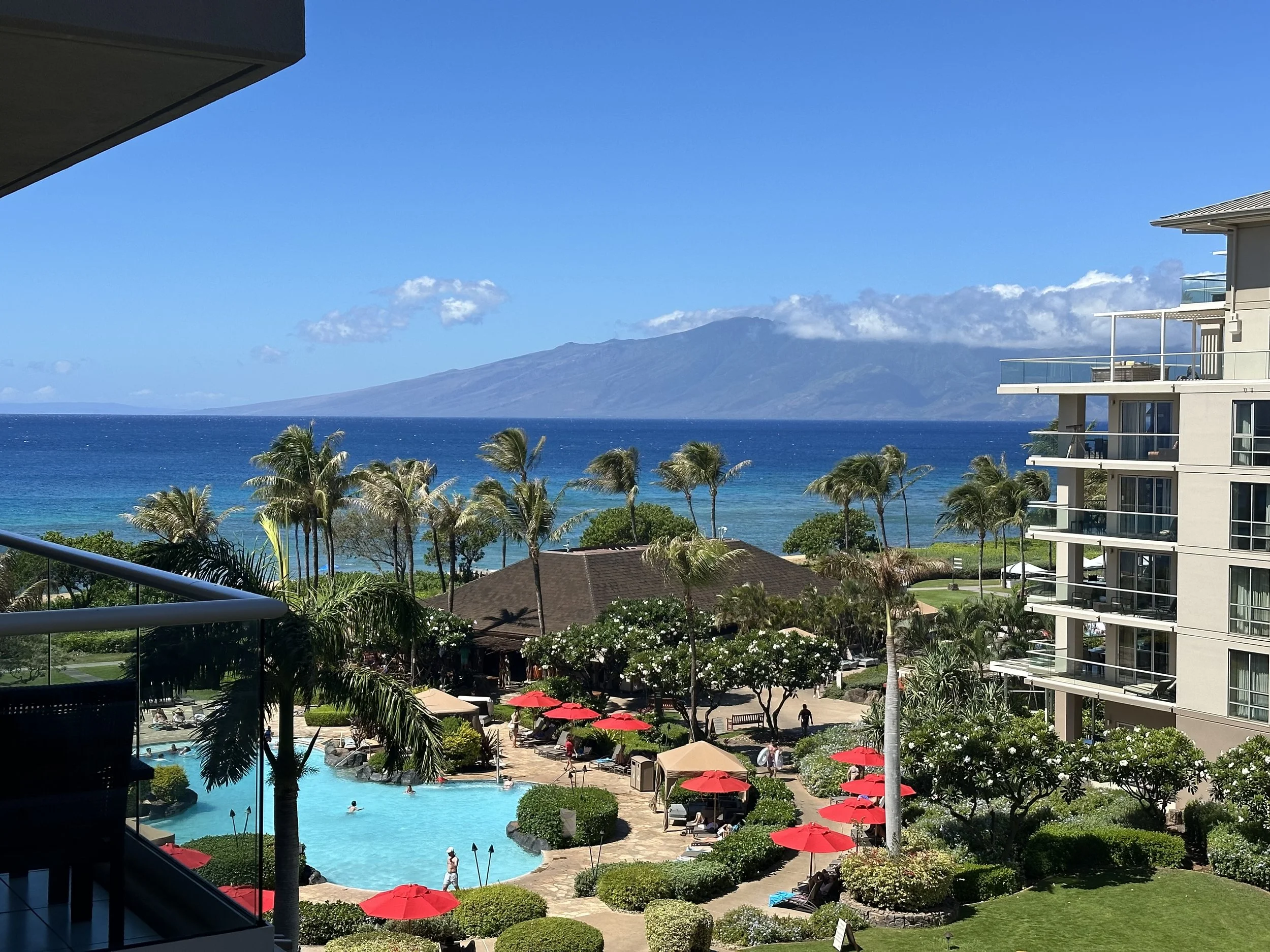 The Westin in Kaanapali has an amazing pool area with slides, fountains, and one especially parent-friendly feature: our 3-year-old could climb up to the slide on their own and land in a shallow pool (about 1.5 feet deep). This setup was a huge win for us—it gave our toddler independence while giving us a much-needed break from constant stair climbing.
