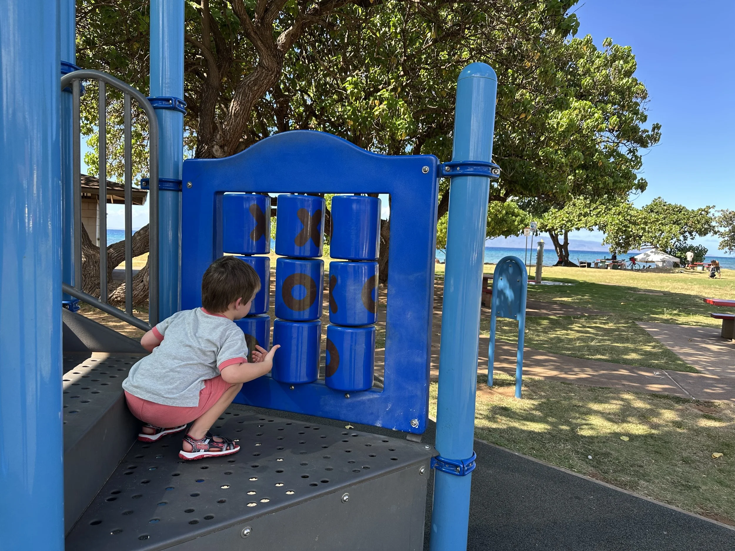 Honokōwai Beach Park has a playground AND a great beach that is protected by a rock reef so it’s more like a pool that even infants can sit and play in! There’s also a public bathroom and parking lot too!